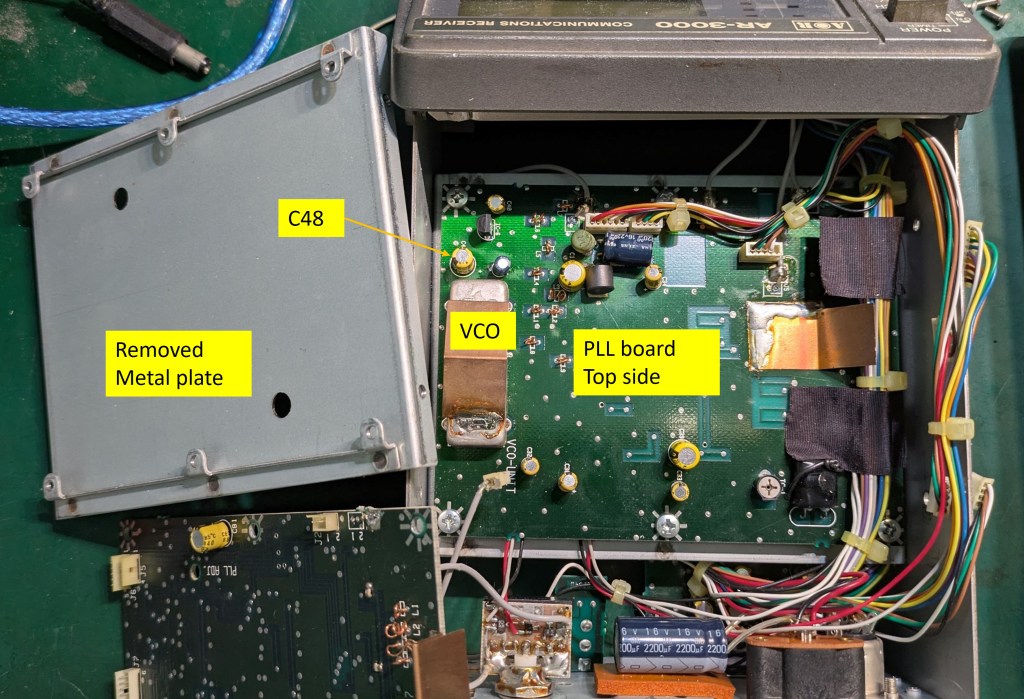 If the PLL circuitry is suspected, the first step in diagnosis is to check the synthesizer/PLL circuitry which for the AR3000 is located in a dedicated PCB. The steps taken to access it is quite involved, however. Below are the troubleshooting procedures I use: